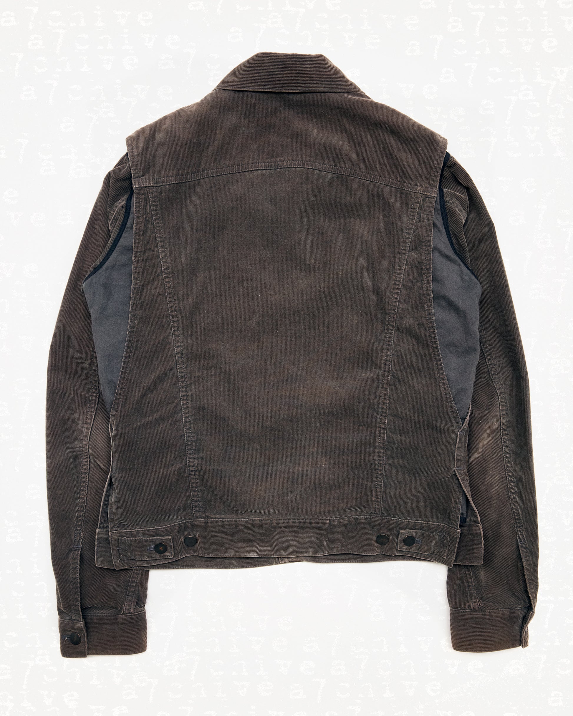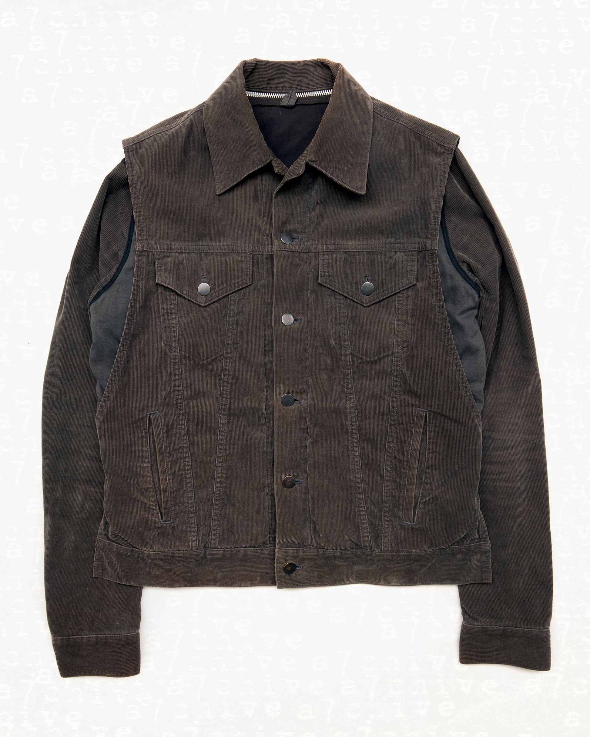 The brown corduroy body and sleeves are complemented by an ash cotton lining, visible as almost a membrane between the sections.